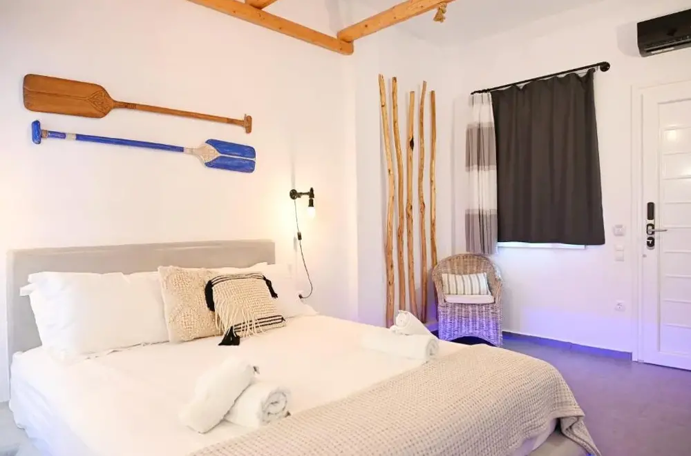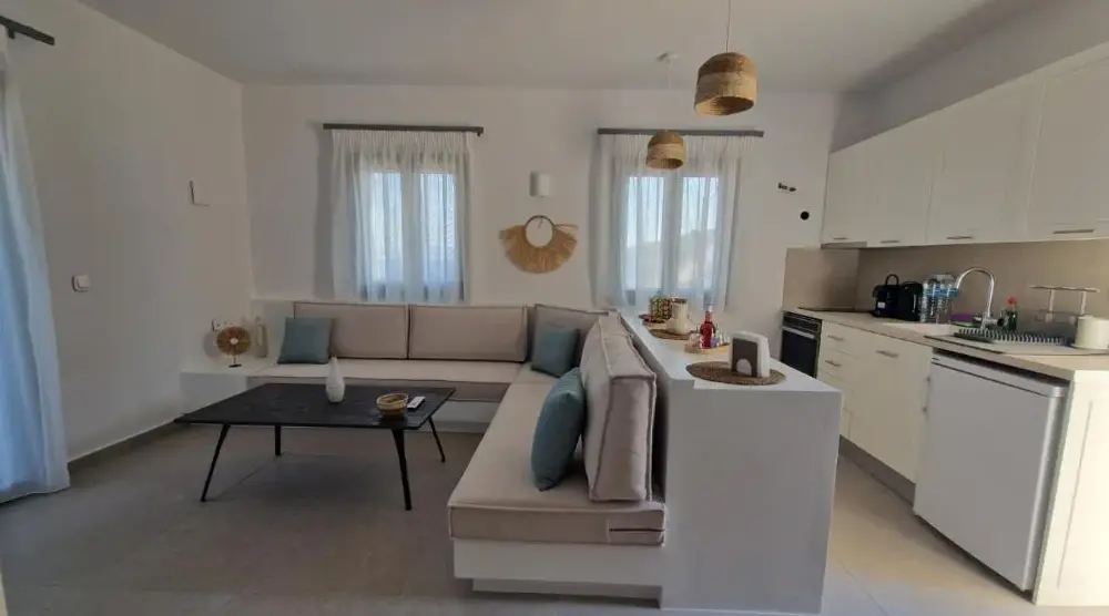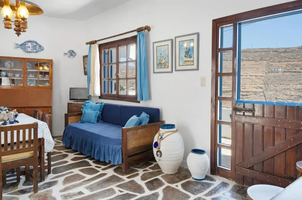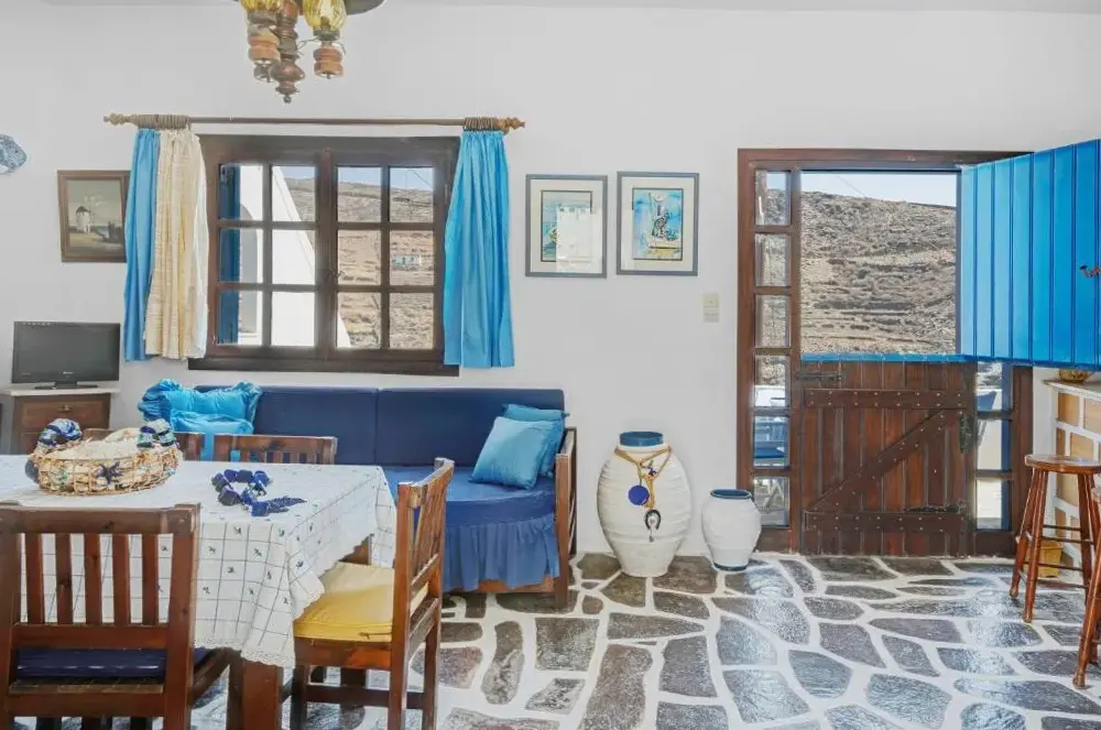 Още информация за Cycladic CottageCycladic Cottage II е комфортабилно престойно място в Great Sand, Kanala, Гърция. Предоставя стаи за непушачи и семейни стаи, както и безплатен WiFi и безплатен паркинг. Районът е близо до множество пляжове, включително Плаж Антонидес на 650 метра, Плаж Ника на 500 метра и Skilou Beach на 2 км. Други популярни места като Ако плаж Ливади (1,3 км), Какия Мария Бийч (2.